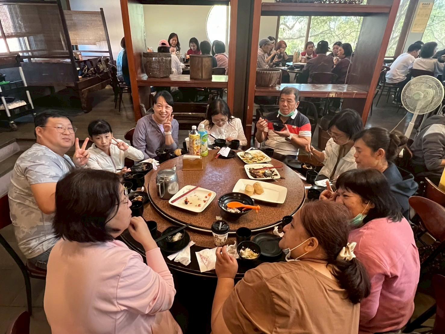 午餐安排在苗栗非常具代表性的「棗莊古藝庭園膳坊」,山城特色的料理讓大家吃得心滿意足,也在共享美食得過程,讓夥伴們從工作夥伴變成生活同伴。這邊「便吃邊聊天」的氛圍,往往比開無數次會議更能拉近距離。